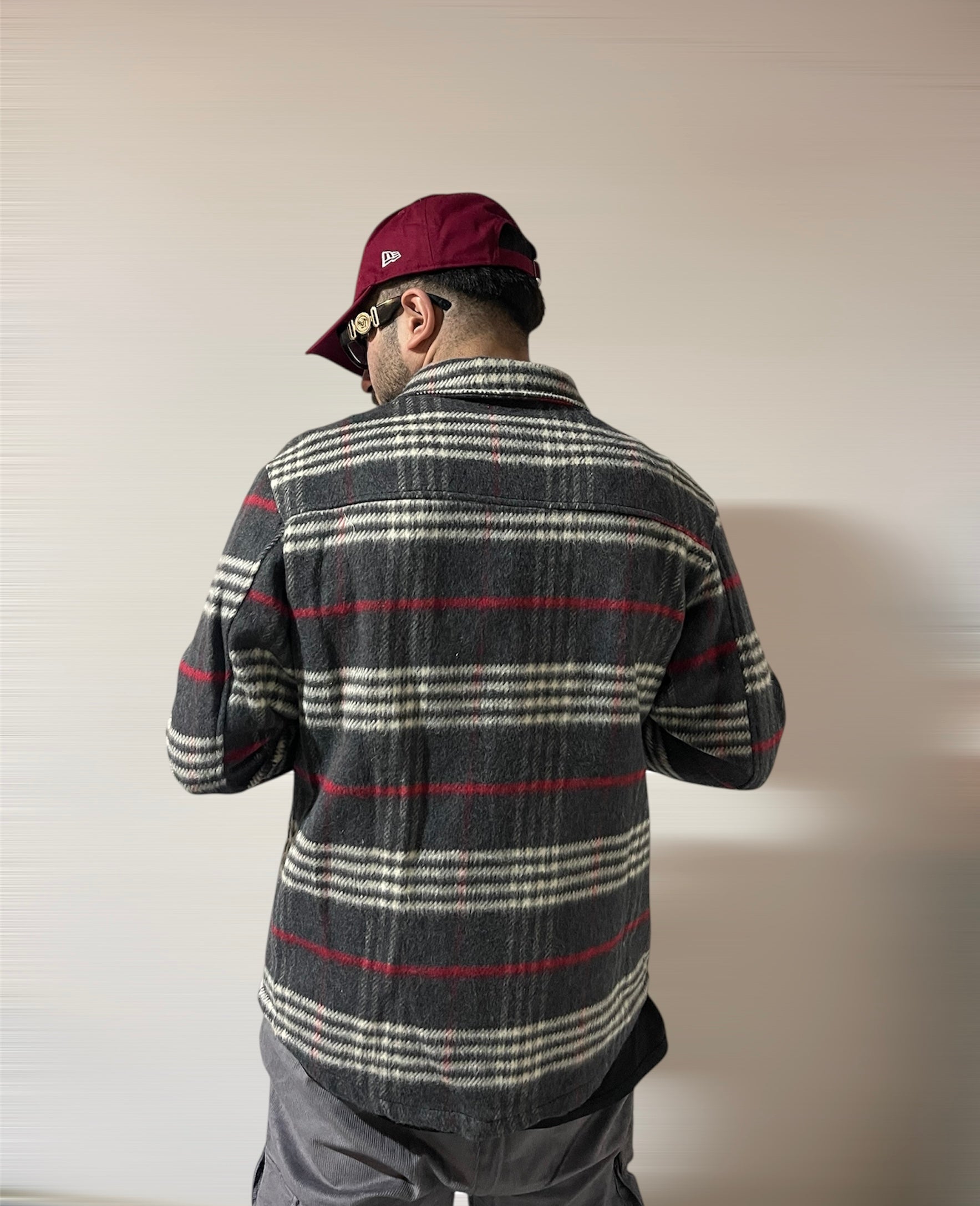 Camicia in flanella colore: grigio e rosso. Comoda calda vestibilità regolare