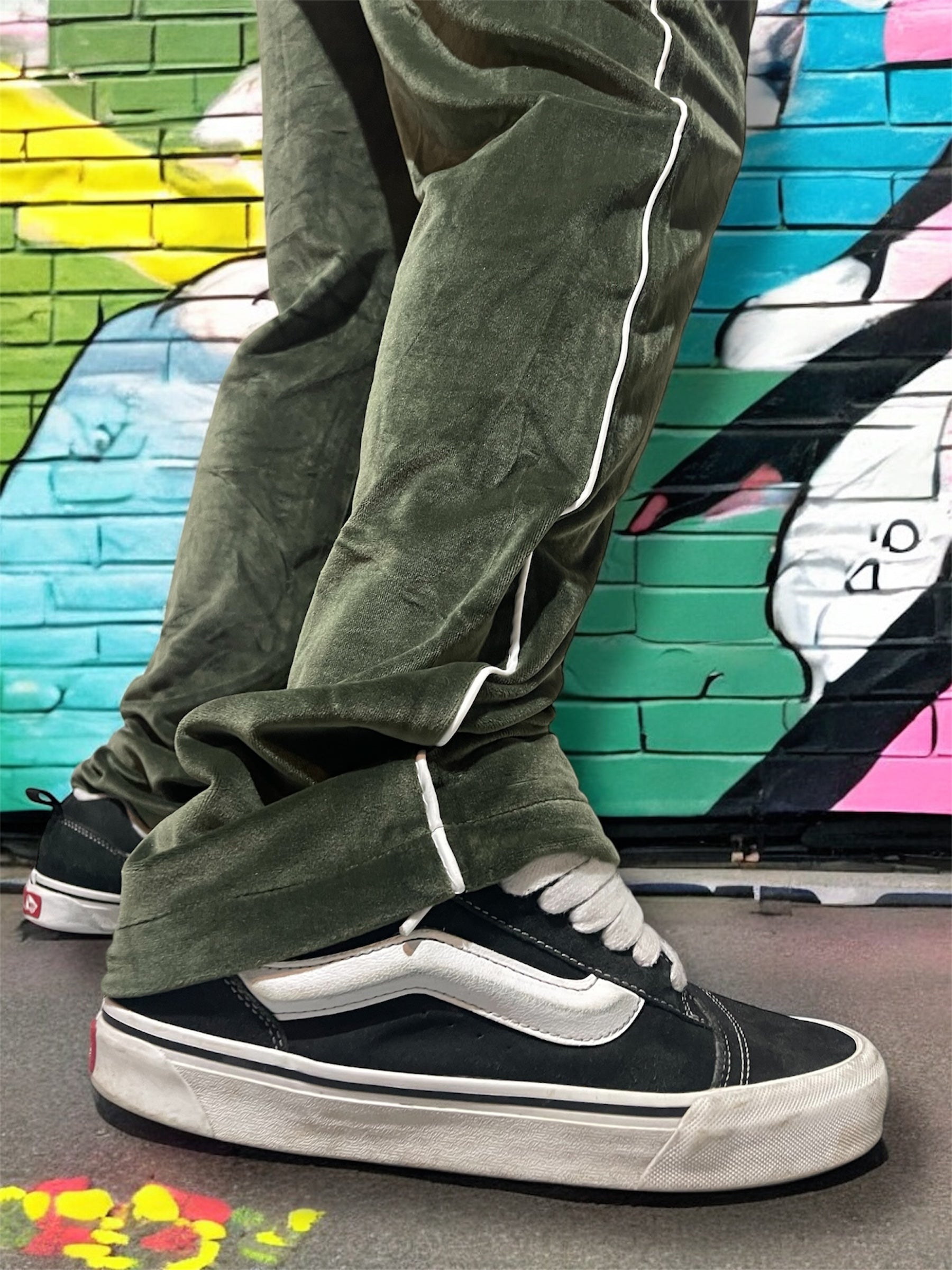 Tuta con zip in ciniglia di colore verde militare, comoda versatile e calca. Tasche laterali, laccetto in vita, fondo regolare. Vestibilità regolare
